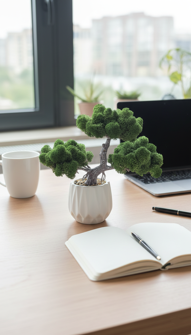 - Cadoul perfect: Spre deosebire de florile clasice, un bonsai din licheni nu are nevoie de apă sau lumină, păstrându-și prospețimea până la 10-15 ani.